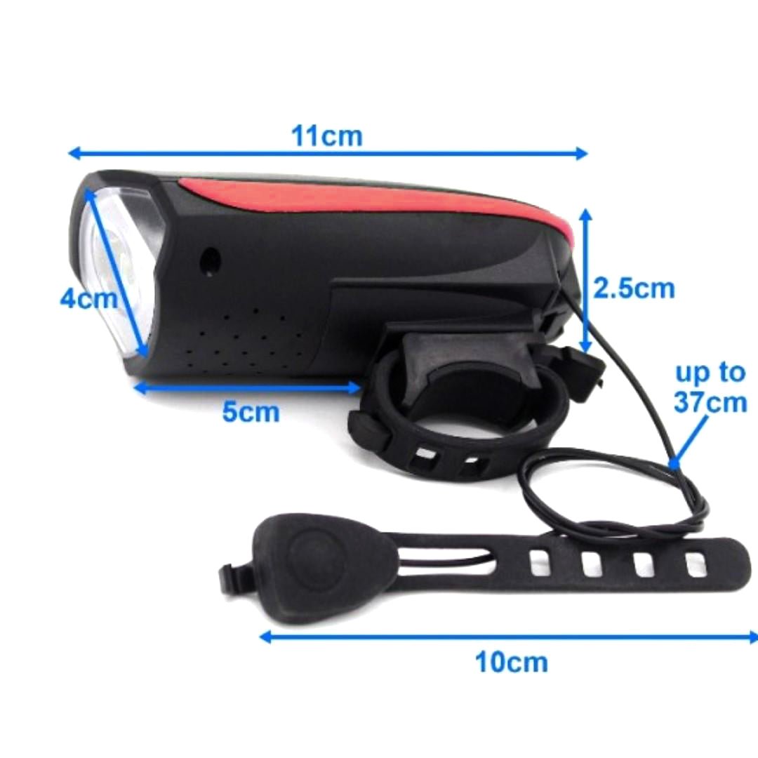 | Additional Features | Water-Resistant Design · 3 Light Modes · 4 Horn Tones · 110 dB Loudness · Easy Tool-Free Installation · Universal Handlebar Fit |