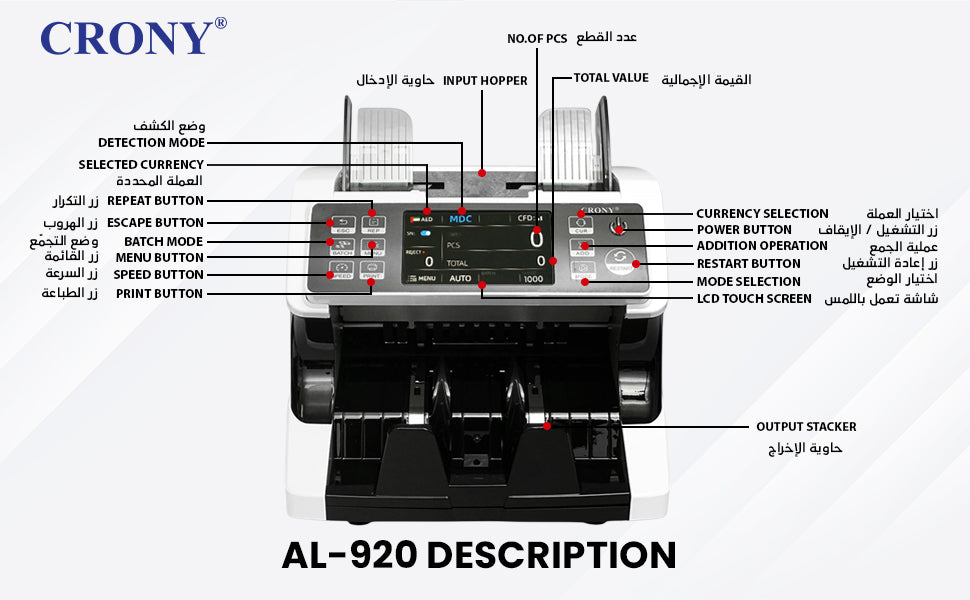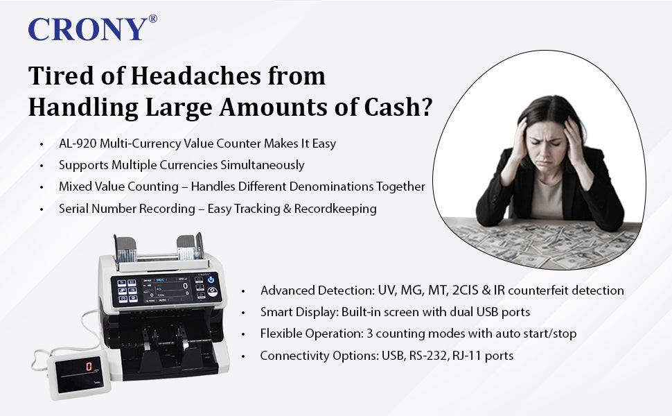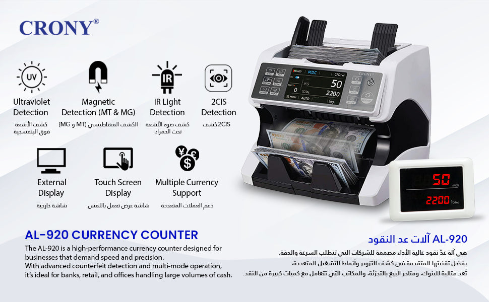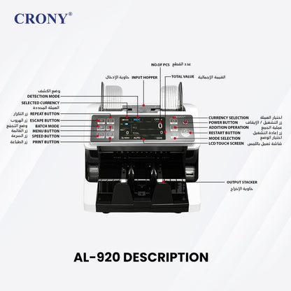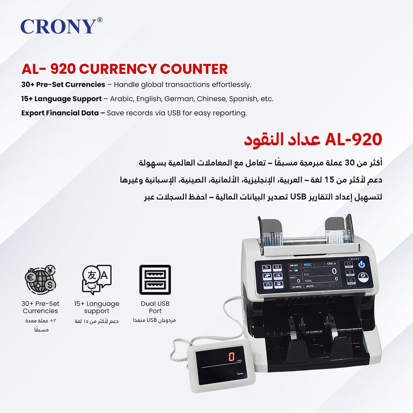 CRONY Banknote Verifiers AL-920 high quality Dual Multi-Currency Value Counter machine Money Counter