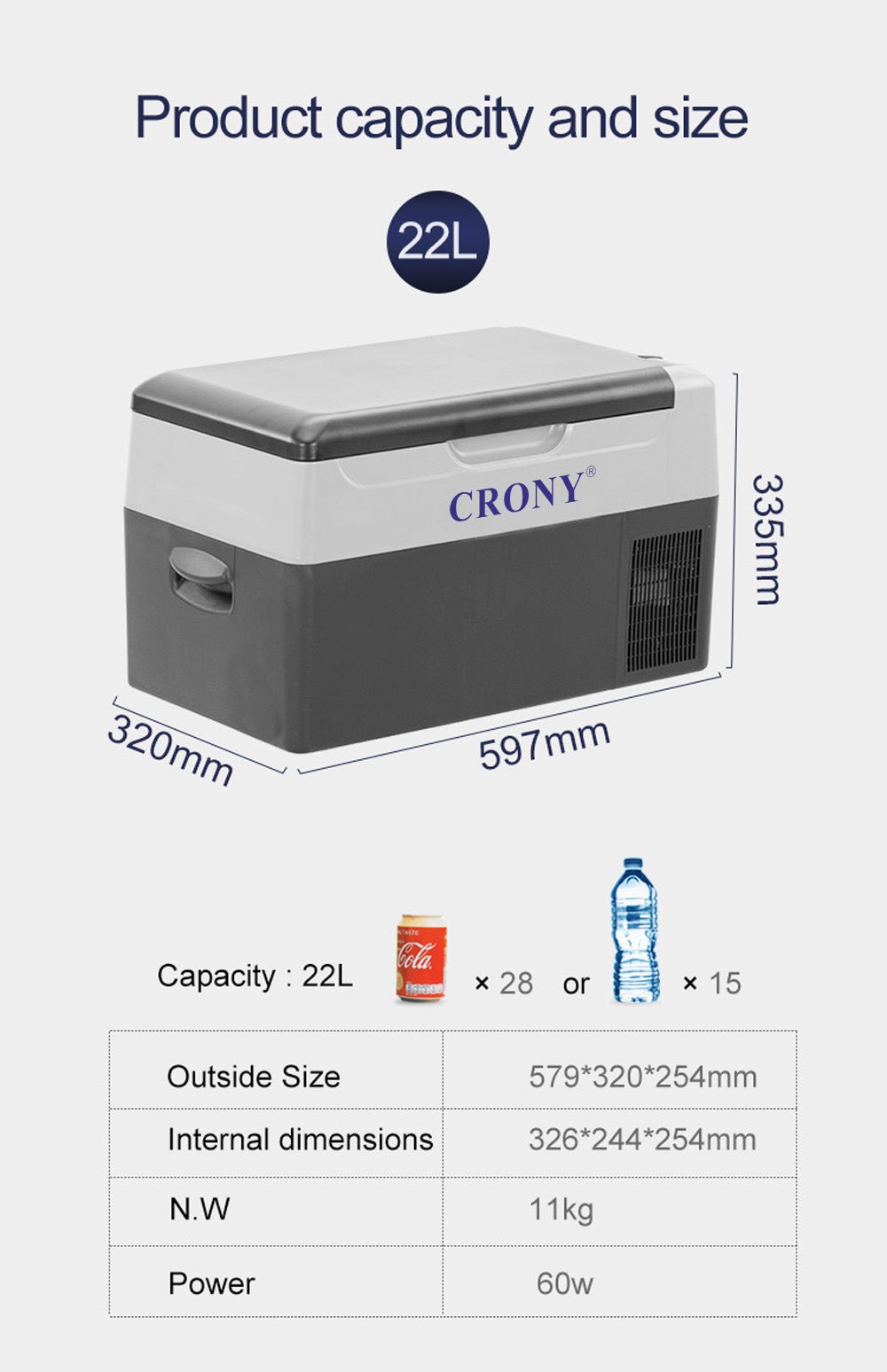 CRONY 22L Custom fridge small car fridge freezers refrigerator outdoor 12v compressor fridge