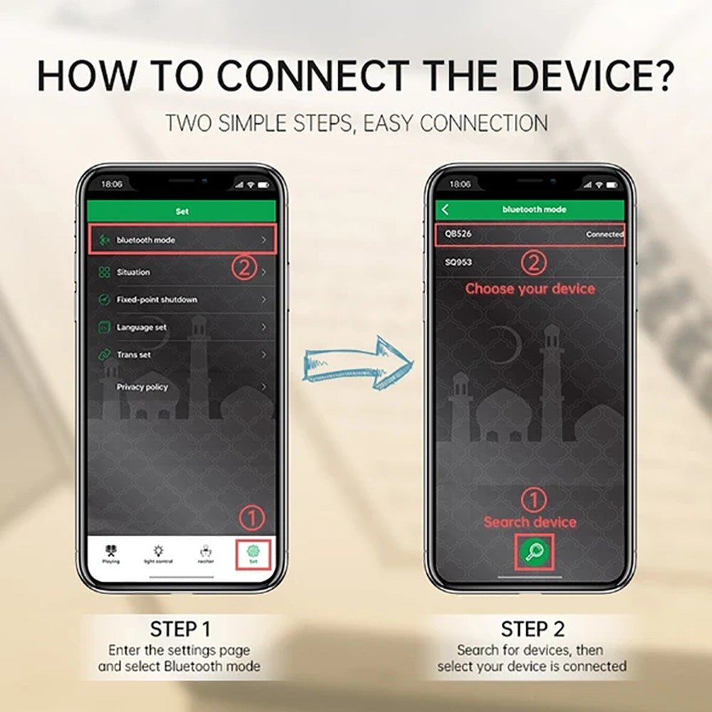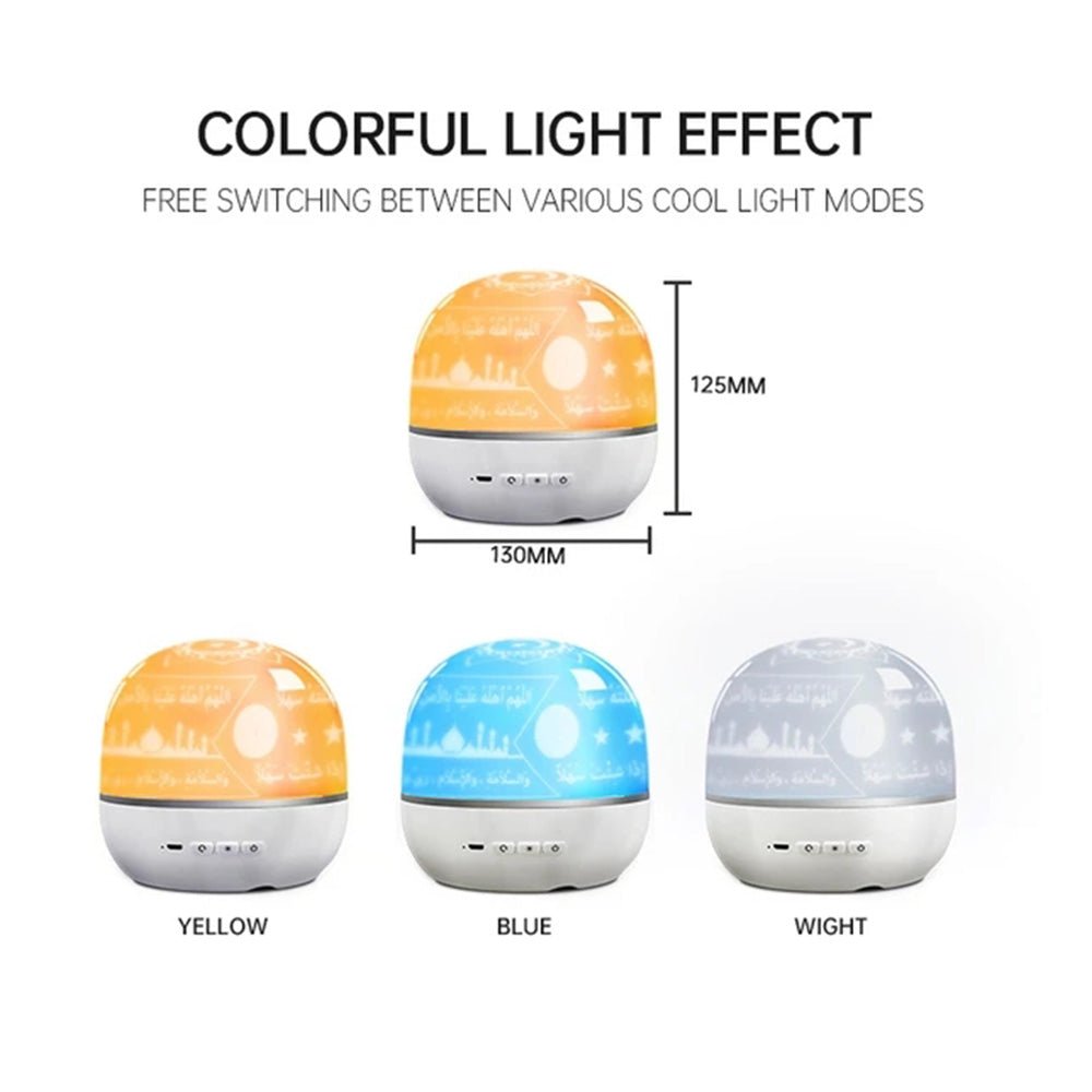 Quran speaker projection lamp is a special product used by Muslims with dual functions (lighting, learning). Using the APP/remote control to select Quran voice frequency and listening to the Quran with high-quality voice. A best way to learn the Quran with your family.
